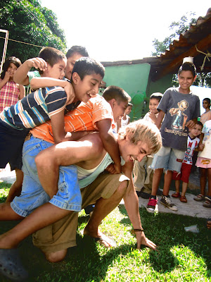 After ministering in the first village, we drove another 40 minutes to a second village called Coyolillo where we heard that the villagers there were black. Come to find out upon arrival, they just had darker skin than in other villages. We also noticed that many of them had blue or green eyes. We had heard that there were witch doctors in the village and we could definitely feel a spiritual heaviness as we took the same approach as in the previous village by going door to door, praying for the sick and inviting everyone to a meeting that we were to hold at 7pm at the Salon Social. The team that I was on prayed for a man’s back and leg to be healed. He was completely healed and ended up coming to the meeting. At the meeting there was a time of worship followed by our luchador drama, which we are perfecting as time goes by. This time Rowan played the part of Jesus. Again, the skit went over well. The people loved it. Breck preached the gospel afterwards, Gillian gave a testimony of healing and Jesse gave an altar call where about 15 people entered into a personal relationship with Christ. Tons more came forward for healing, too. The service continued on into the night as the Holy Spirit was poured out in that place. As we all sat around the dinner table that evening to share a meal together, I pondered the day’s events and knew that beyond a shadow of a doubt that two villages had been touched by the finger of God.